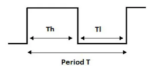 The output high time (Th), low time (Tl), and total period (T) are: