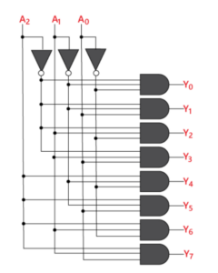 A 3-to-8 binary decoder converts three binary inputs (A, B, and C)