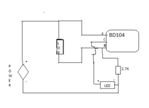- Connect the 2.7 kΩ resistor between the base of the transistor and the negative terminal of the LED.