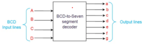 This circuit typically has four input lines — A, B, C, and D — and seven output lines — a, b, c, d, e, f, and g. The truth table specifies which segments must be turned ON to display a particular decimal digit.