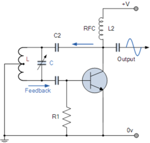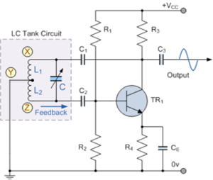 The Hartley Oscillator is a type of LC oscillator in which the collector and base of a transistor amplifier are connected to a tuned LC circuit. The emitter is connected to a tapping point on the tuned circuit coil, which influences the oscillatory voltage. The feedback portion of the LC tank circuit is taken from the center tap of the inductor coil, or from two separate inductors connected in series and in parallel with a variable capacitor C.
