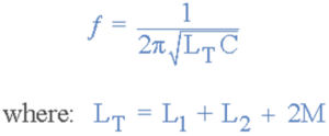 Just like in the transistor-based design, the gain of the op-amp circuit must be equal to or slightly greater than the ratio of the two inductors L1 and L2. When both inductive coils are wound on a single core and share mutual inductance M, the effective inductance ratio becomes: