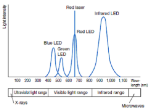 Most photoelectric sensors use infrared or visible light (commonly red, green, or blue for color detection).