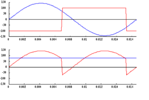 • During the negative half cycle, the reverse-biased thyristors conduct, again producing rectified DC.