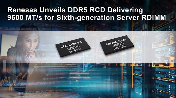 TOKYO, Japan, November 12, 2025 ― Renesas Electronics Corporation (TSE: 6723), a premier supplier of advanced semiconductor solutions, today announced that it has delivered the industry’s first sixth-generation Registered Clock Driver (RCD) for DDR5 Registered Dual In-line Memory Modules (RDIMMs). The new RCD is the first to achieve a data rate of 9600 Mega Transfers Per Second (MT/s), surpassing the industry standard. This breakthrough marks a significant leap from the 8800 MT/s performance of Renesas’ Gen5 RCD, setting a new standard for memory interface performance in data center servers.