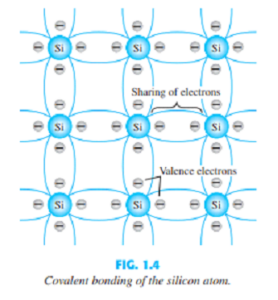 Semiconductor atoms are bonded together in a regular, periodic crystal structure. The electrons surrounding each atom participate in covalent bonding.