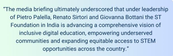 The briefing showcased how India has become one of the most dynamic regions for the Foundation, where large-scale social needs intersect with rapid technological transformation. Under the leadership of Giovanna Bottani , Director of Operations (COO) – ST Foundation, ST Foundation India is focusing on scalable, inclusive education models that equip underserved communities with digital skills and pathways to future employment.