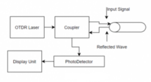 An Optical Time-Domain Reflectometer measures signal loss in an optical fiber by launching a series of optical pulses into the fiber and analyzing the back-scattered light. The working principle of an OTDR is based on Rayleigh scattering and Fresnel reflections. The OTDR consists of a laser light source and a photodetector connected through either an optical coupler or an optical circulator. The fiber under test is connected via a front-panel connector.