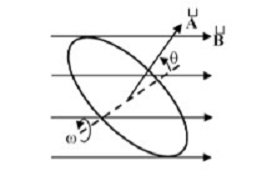 For a circular loop rotating with angular velocity ω in a uniform magnetic field B: